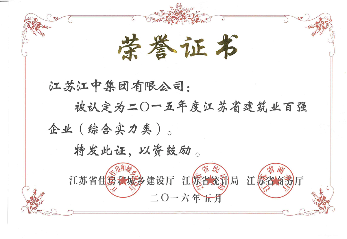 荣获建筑业百强企业