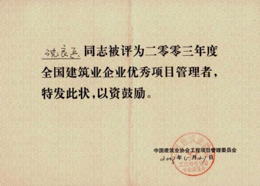 沈良兵主席荣获全国建筑业优秀项目管理者