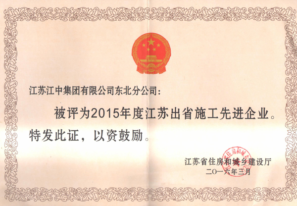 近日,江苏省住房和城乡建设厅对2015年度江苏省施工先进企业和先进个人予以通报表彰,集团东北公司荣膺2015年度出省建筑施工先进企业,东北区总经理马华被授予出省建筑施工优秀企业经理、东北公司副经理高子兵被授予出省建筑施工优秀项目负责人称号。