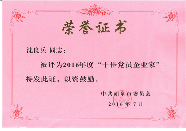 集团沈忠星被授予“江苏省劳动模范”荣誉称号 集团黄新建被授予“如皋市五一劳动奖章”荣誉称号