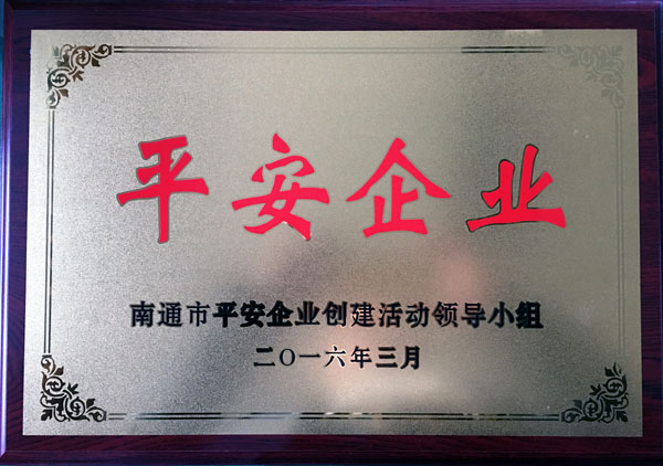 近期集团被南通市平安企业创建活动领导小组办公室,评为南通市“平安企业”。