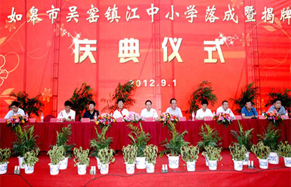 2012年9月1日下午,如皋市吴窑镇江中小学举行落成暨揭牌仪式,庆祝学校落成启用。市人大常委会副主任张元健、副市长缪爱诚、吴窑镇党委书记赵宏祥、集团董事局主席沈良兵等领导出席揭牌仪式。