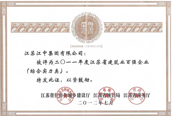 • 集团荣获2011年度江苏省建筑业“百强企业”