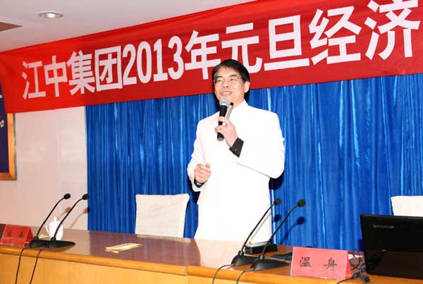 2013年元月1-2日集团在培训中心三楼会议室隆重举行了2013年元旦经济工作会议。2日下午会议上,集团董事局主席沈良兵从:1、各项指标再创新高,稳步保持增长态势;2、诚信经营质量至上,强化企业品牌建设;3、以人为本人才兴企,集聚企业发展后劲;4、全力以赴关口前移,强化现场立体管理;5、多元经营开拓进取,提升企业综合实力;6、党建统领文化领先,发展合力继续增强。等方面对集团2012年取的成绩进行了总结,并给予了充分肯定。同时也要求大家更清醒地认识到企业发展中存在的问题和不足,需要更好的去完善和提高。
