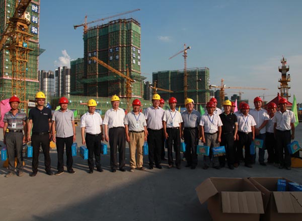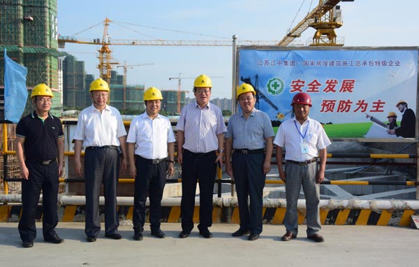 2015年7月31日下午,冒着烈日酷暑,如皋市人大常委会副主任张元健、如皋市总工会书记刘建明等领导在集团党委书记、工会主席沈岳的陪同下,前往江阴市慰问集团一公司澄星项目部奋战在高温一线的建筑工人,给工人们送上了防暑降温用品,市领导叮嘱大家注意安全,预防中暑,做到劳逸结合。