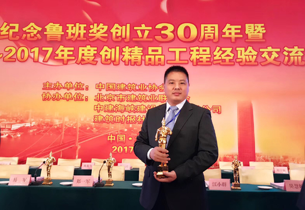 2017年11月6日,在北京钓鱼台国宾馆隆重召开纪念鲁班奖创立30周年暨2016~2017年度创精品工程经验交流会,我集团董事长马华、总裁沈锋、副总裁总工程师沈世祥应邀参加颁奖典礼。集团东北公司总承包施工的哈尔滨金河湾世纪广场酒店工程荣获鲁班奖,集团装饰公司荣获参建鲁班奖。至此,江中集团已连续荣获12项鲁班奖。