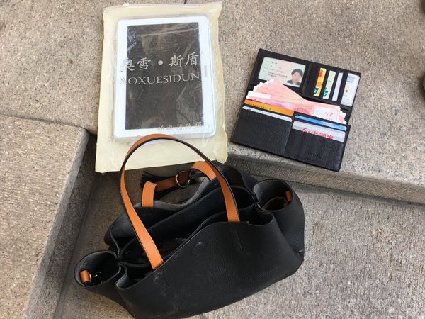 2017年12月22日中午,集团总公司后勤部职工殷克权同志,在去社保所办事的路上,捡到一个女士皮包,内有现金二千多元、平板电脑、从业资格证、银行卡几张及身份证等物。捡到后,沿途打听多人均不知皮包是谁丢失的,于是到集团总公司向董事局主席汇报,主席指示一定要找到失主,并表扬了他的行为。下午一上班他就将皮包交到办公室,通过大家一起查找,终于在一张表格上找到失主电话,殷克权同志立即拨打了失主电话。该失主此时正在派出所报案,万分焦急,急忙赶到集团总公司,经过确认后,看到失而复得的皮包,连声说“多谢你!多谢!并拿出800元给殷克权表示感谢,殷克权憨厚地摆摆手说:“不用谢,没事!没事!