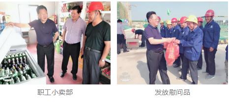 在慰问现场,沈主席为一线员工送去了防暑用品,并与他们亲切交谈,检查了施工现场,职工生活区,嘱咐大家一定要有安全施工意识,严格落实好夏季施工的各项防暑降温措施,保证施工安全,确保工程稳步扎实推进。