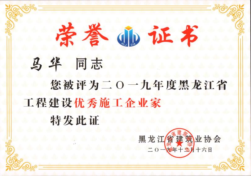 集团董事长马华荣获“2019年度黑龙江省工程建设优秀施工企业家”荣誉称号