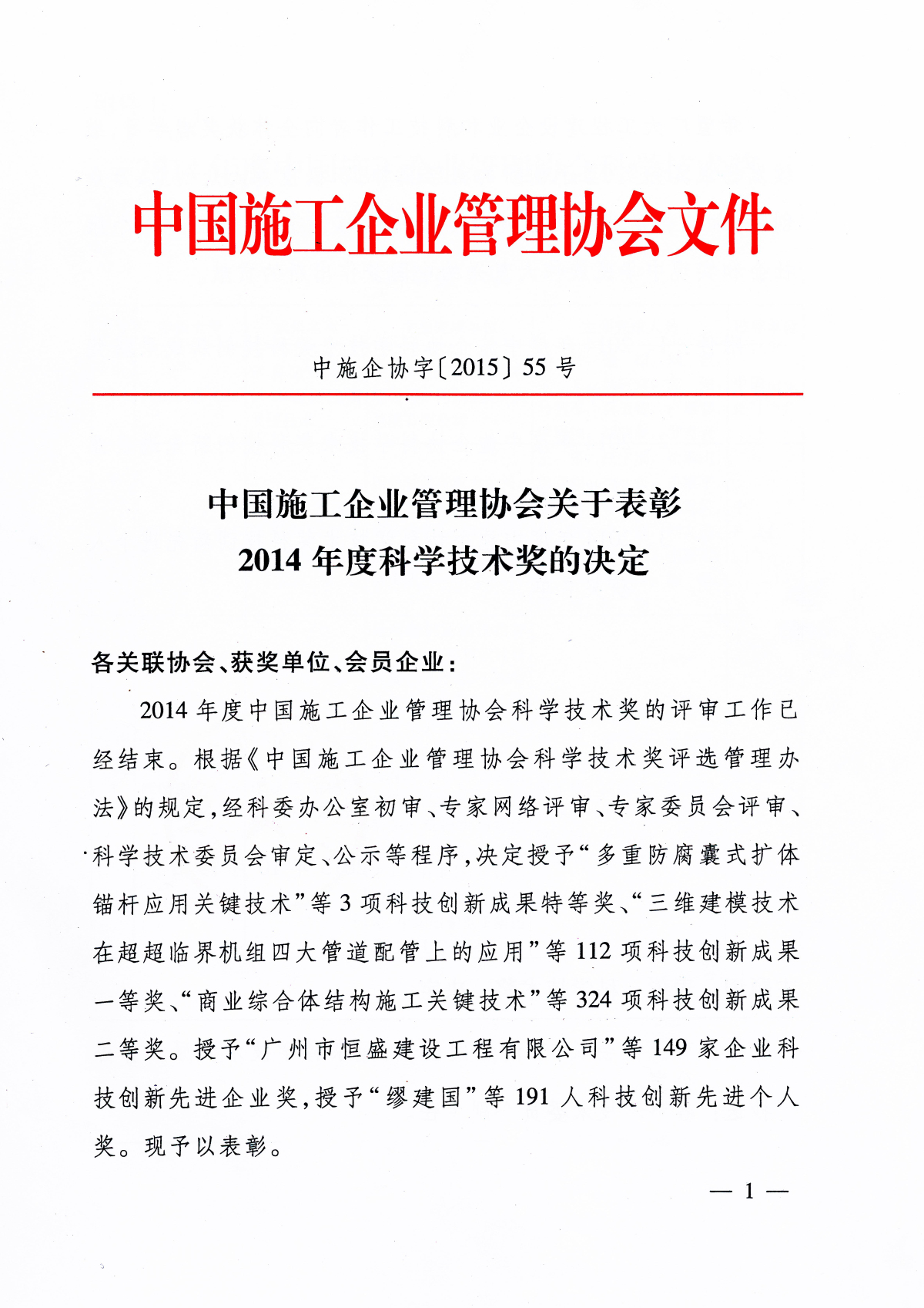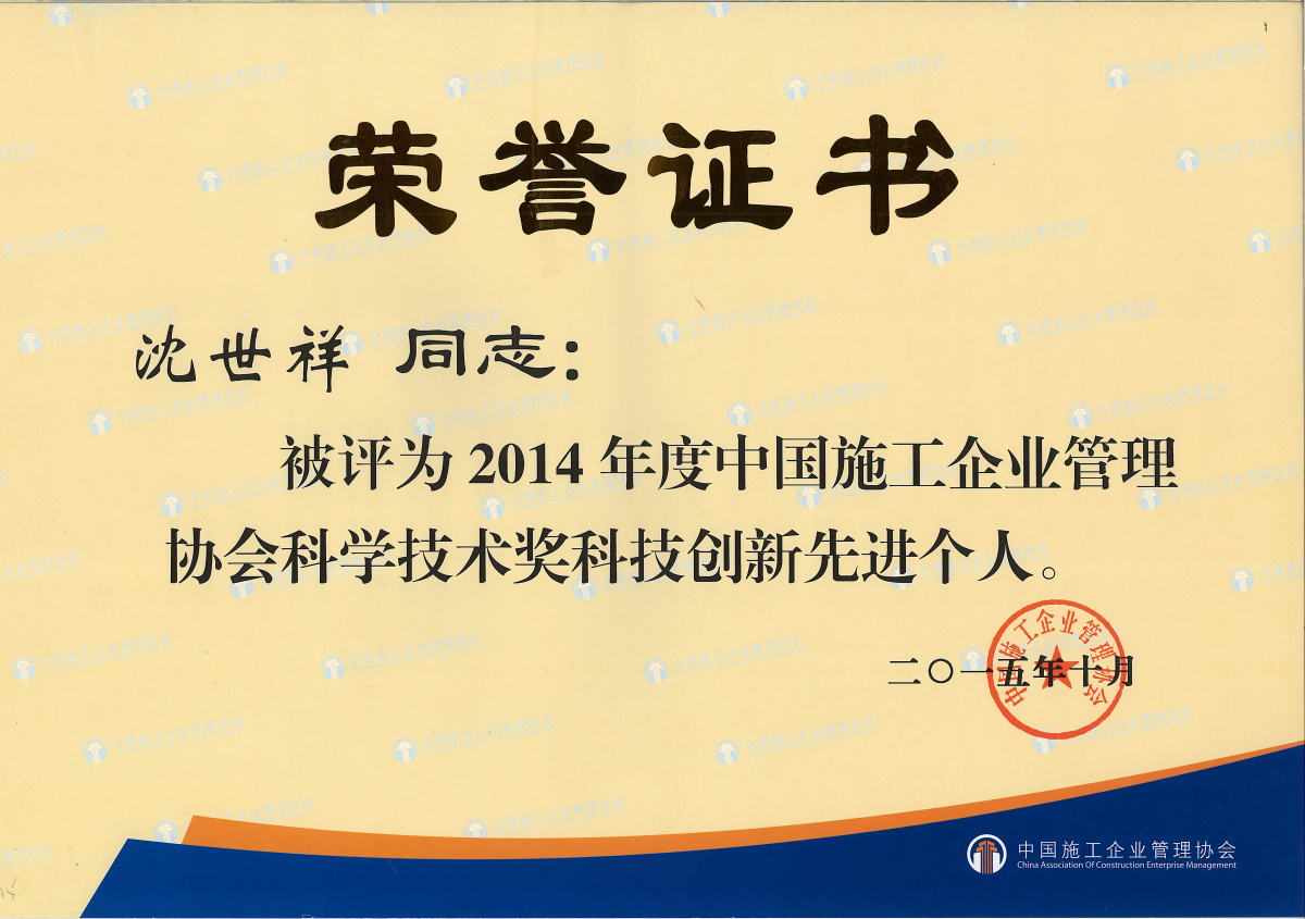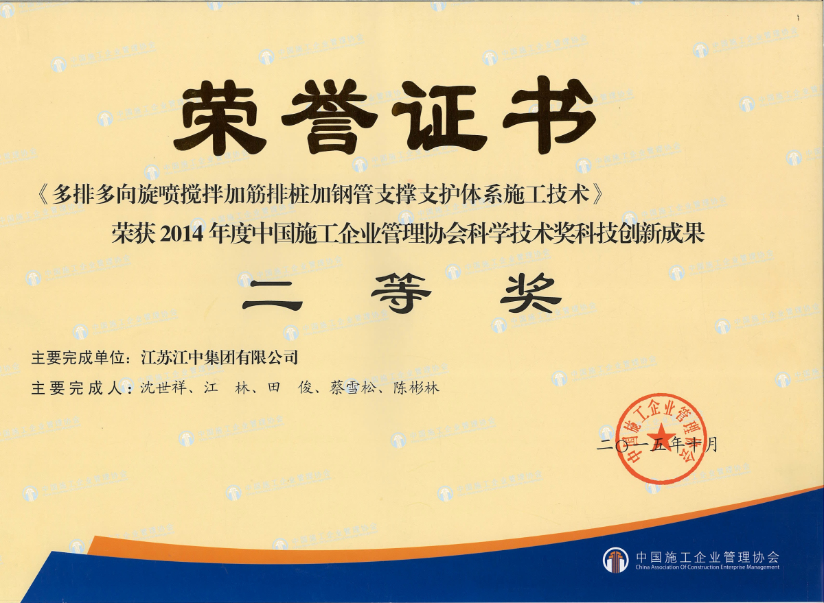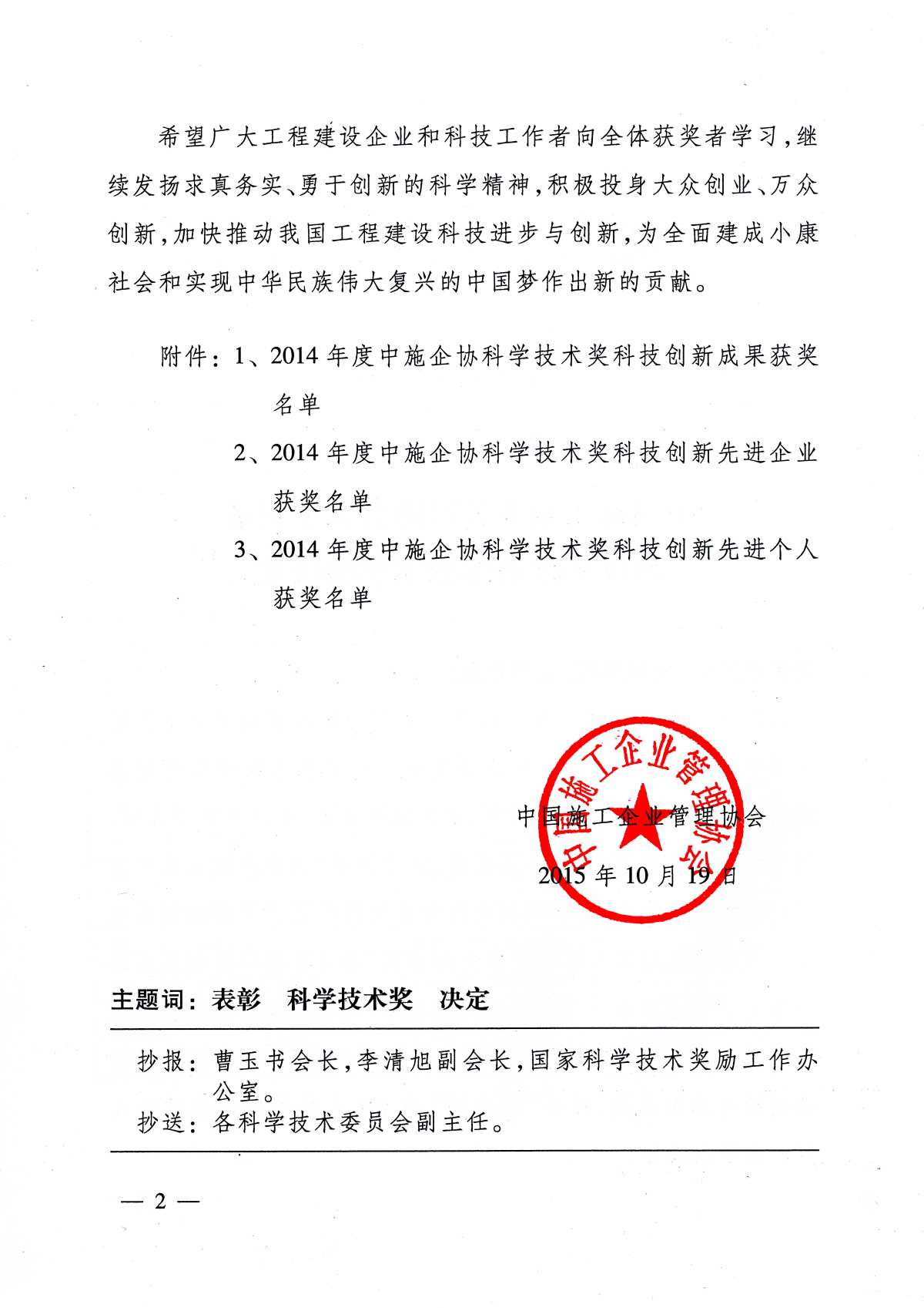 2014年度科学技术奖科技创新成果-中施协二等奖