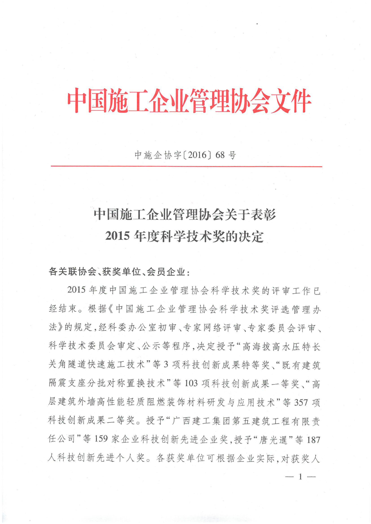 下一篇:2015年度建设工程施工技术创新成果奖-中建协三等奖